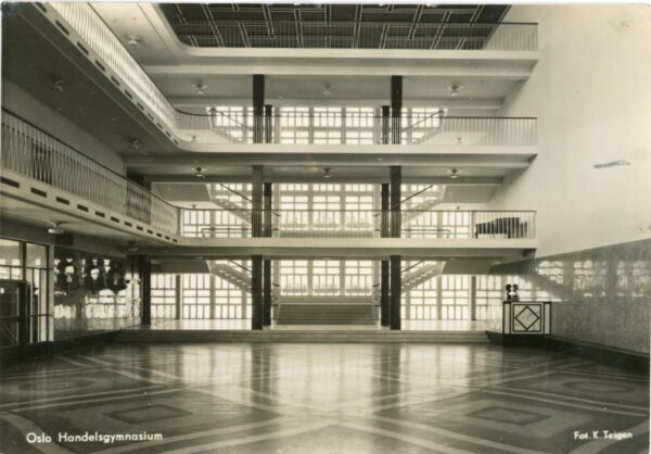 Norway: Unused photo postcard titled ‘Oslo Handelsgymnasium’.
