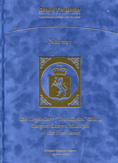 Auction Catalogue: 2008 (4 April). Norway The Legendary “Trondheim” Block, David Feldman, 1 lot, velvet bound.