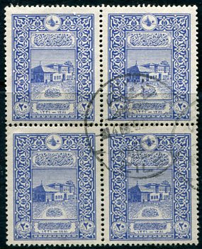 Ottoman Turkey: Block of 20pa of 1916 pictorial struck by ZILE (vilayet Sivas, A&P type 10, R) datestamp.
