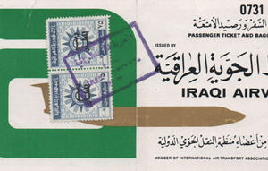 1973 Iraq Airways 2x75f Airport Tax Ticket