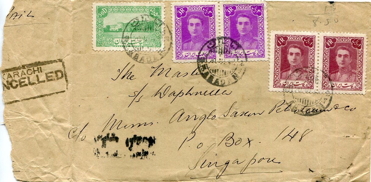 1948 Persia Abadan via Basra Karachi to Singapore
