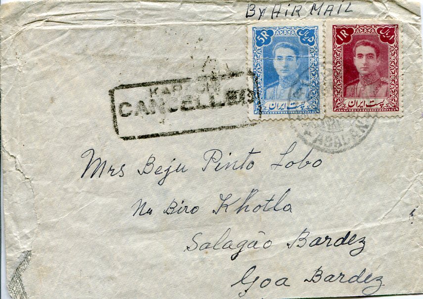 1948 Persia Abadan to Saligao Goa India via Karachi