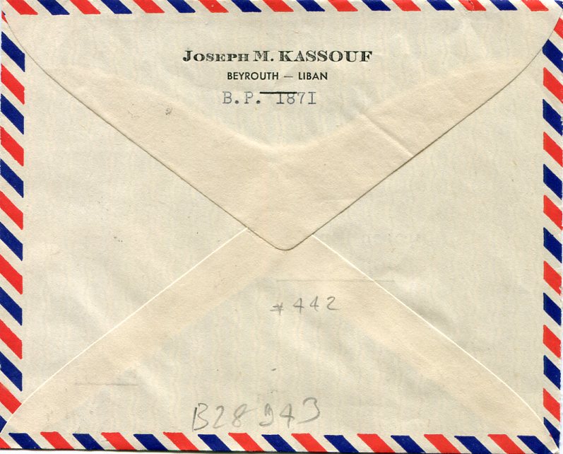 1951 Lebanon 35p Franking Airmail Cover