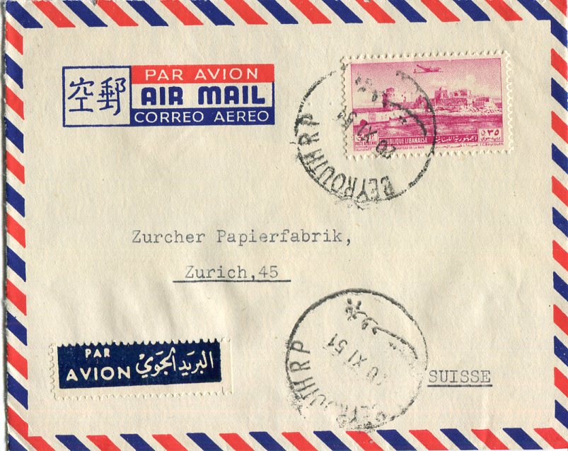 1951 Lebanon 35p Airmail to Switzerland
