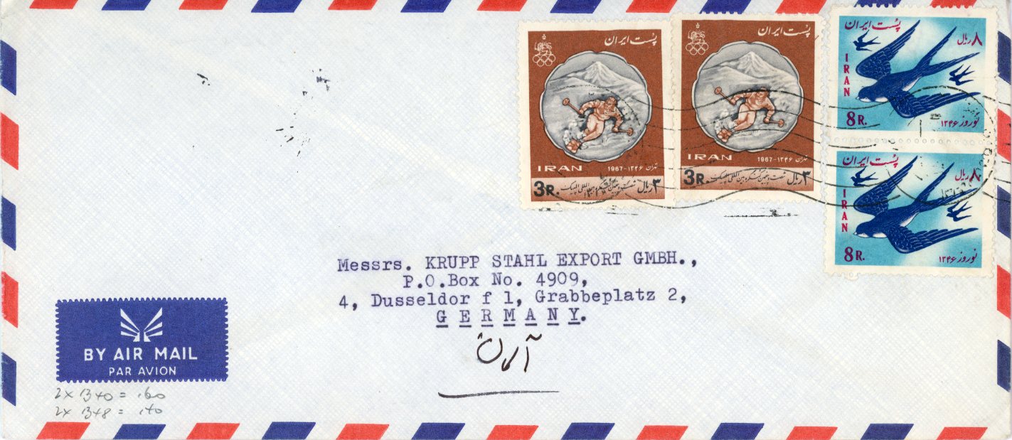 1967 Persia Olympic Skiing and Bird Swallow to Germany