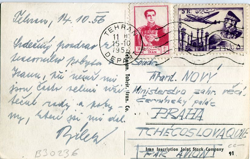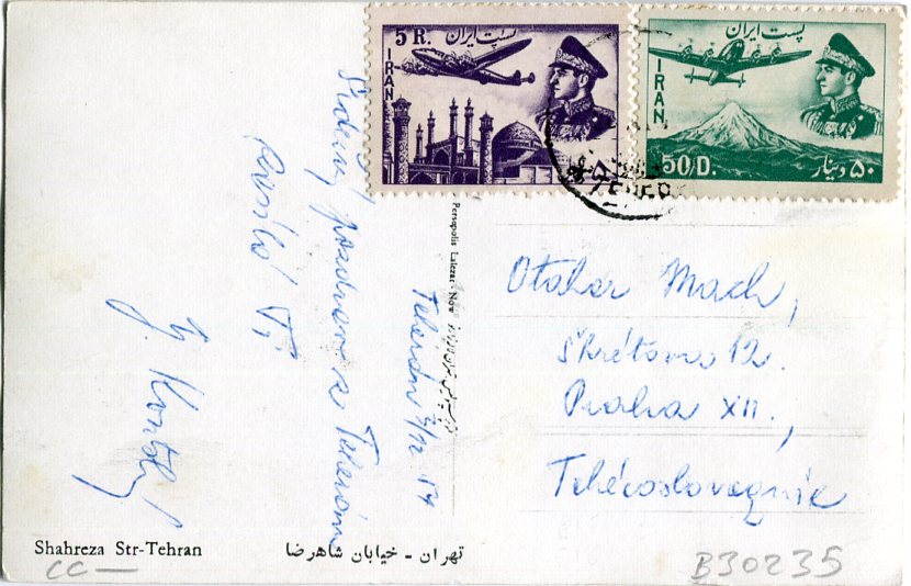 Persia Teheran Shahreza Street 1954 to Czechoslovakia