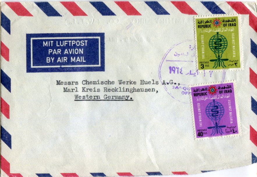 1964 Iraq Sadoun Malaria Cover to Germany