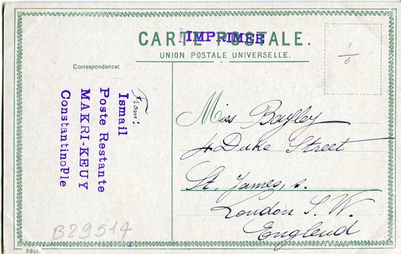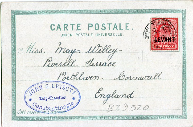 Turkey Beykoz Ship Chandler 1906 to Portleven Cornwall