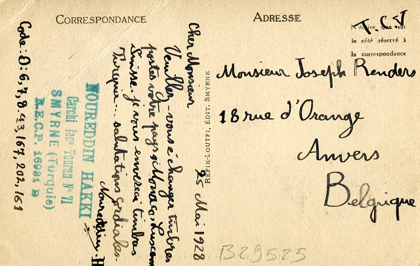 Turkey Izmir 1928 Noureddin Hakki to Anvers ed Refik Loutfi