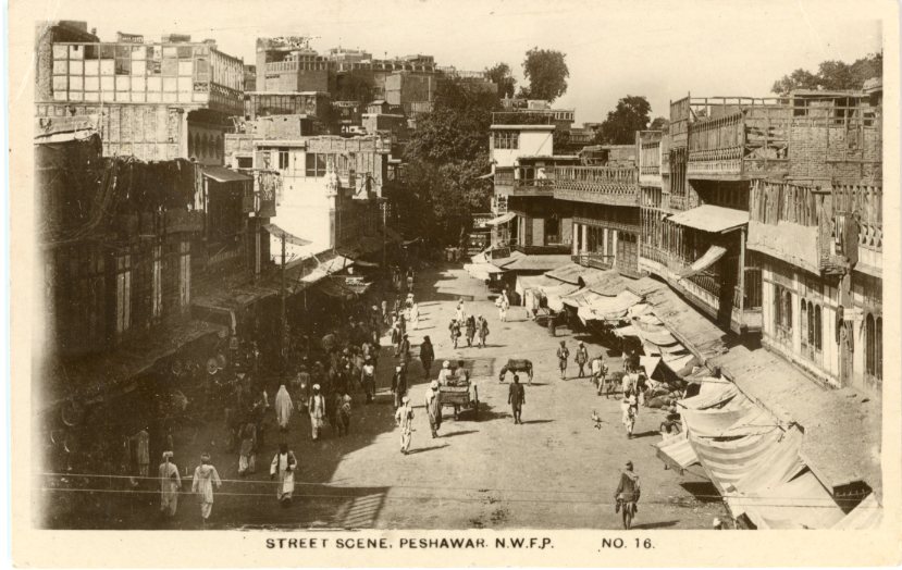 Pakistan: Unused photo postcard titled ‘Street Scene. Peshawar. N.W.F.P. #16’.