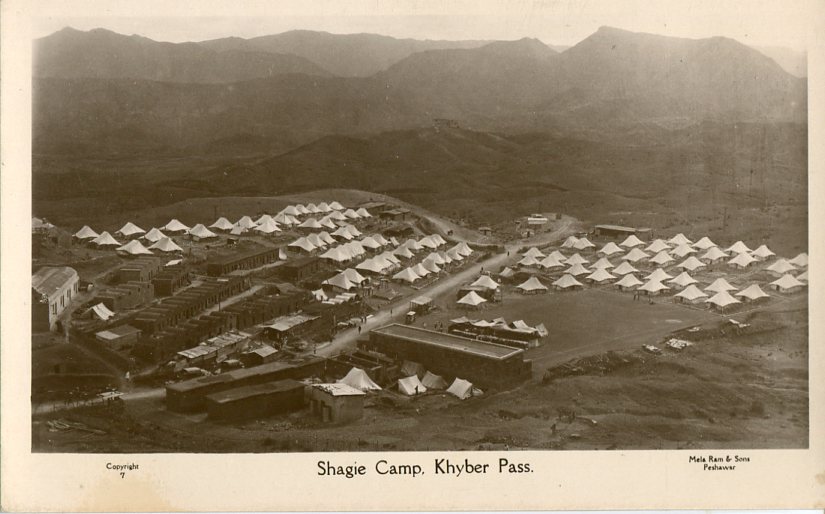 Pakistan – Afghanistan: Unused photocard titled ‘Shagie Camp, Khyber Pass‘. ed. Mela Ram