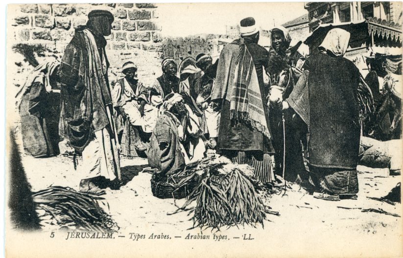 Palestine: Unused postcard titled ‘Arabian Types’. Green background. ed. Levy, Paris