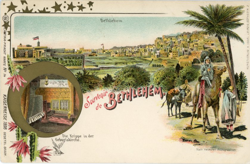 Palestine: 1898 unused Kaiserreisse type multi view Bethlehem postcard. (ed. Kunstverlag H. Vogel, Leipzig no. 14).