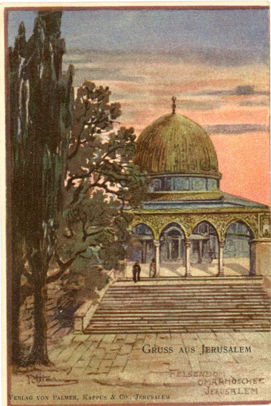 Palestine: Unused Gruss aus Jerusalem Omar Mosque postcard. ed. Palmer, Kappus