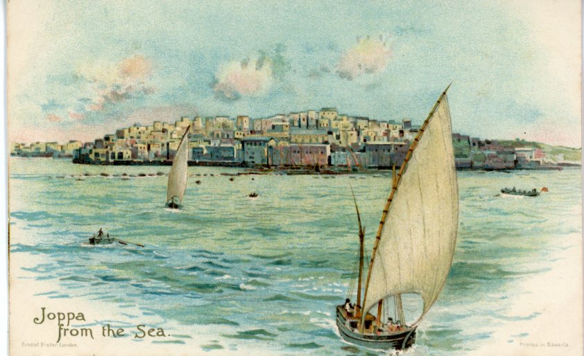 Palestine: Unused postcard titled ‘Joppa from the Sea’. ed. Ernest Rister