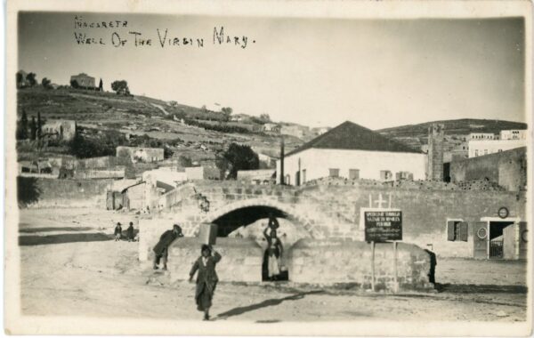 Palestine: Unused photocard titled ‘Nazareth. Well Of The Virgin Mary’ with a message on reverse. photo Miss Karimeh Abbud