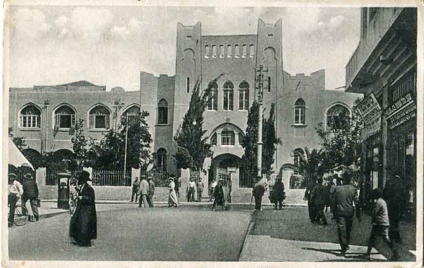 Palestine: Unused postcard of Tel Aviv Gymnasium printed in Czechoslovakia.
