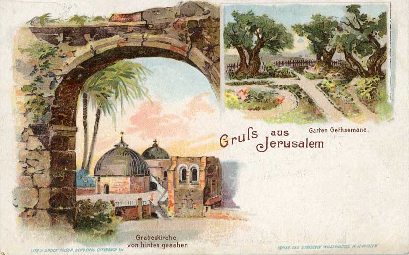 Palestine Unused Gruss Aus Jerusalem Litho Postcard