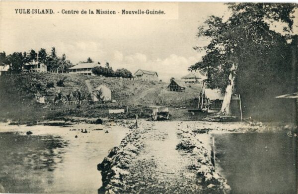 Papua and New Guinea: Unused photo postcard titled ‘Yule Island – Centre de la Mission’.