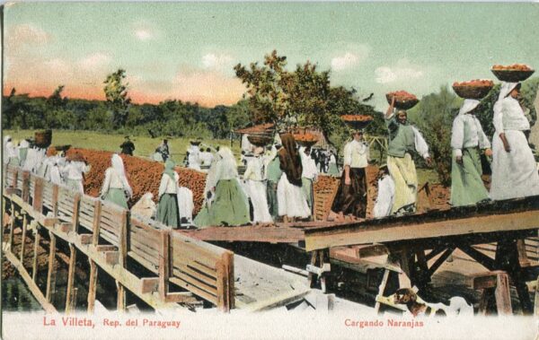 Unused postcard titled ‘La Villeta. Cargando Naranjas’.