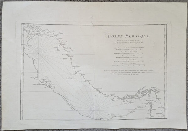 Iran: 1776 map by St. D’Anville titled ‘Golfe Persique. Dresse en 1758 et publie en 76, par le St. D’Anville’. Two small repairs on top middle frame and right of the text. overall size 550 x 380mm.