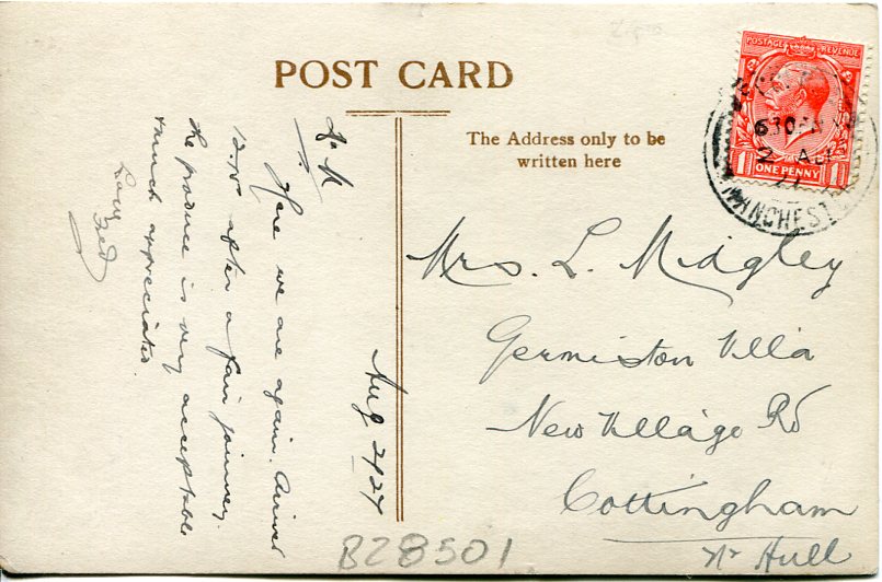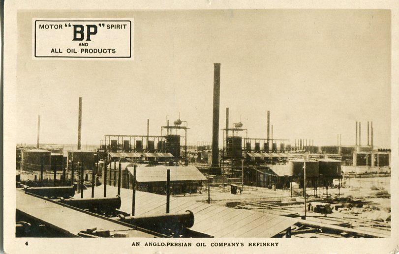 Iran: 1927 postcard titled ‘An Anglo-Persian Oil Company’s Refinery’ inserted an advertisement “MOTOR SPIRIT BP AND ALL OIL PRODUCTS” used from Manchester to Nottingham
