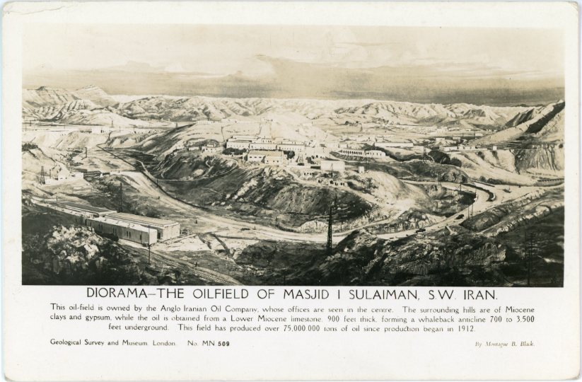 Iran: Unused photo postcard titled ‘Diorama – The Oilfield of Masjid I Suleiman’.