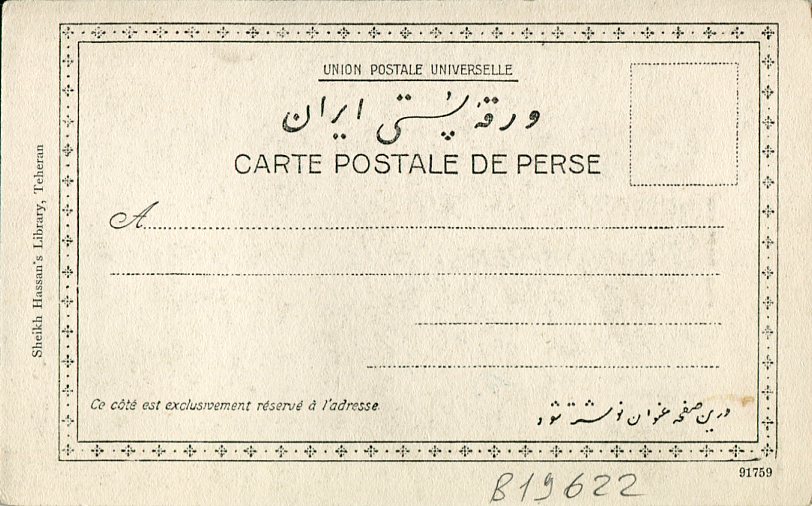 Unused postcard titled ‘Nasr-ud-din Shah’.