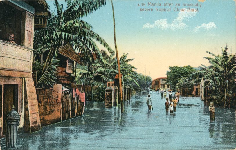 Philippines: Unused postcard titled ‘Manila after an unusually severe tropical Cloud Burst’.