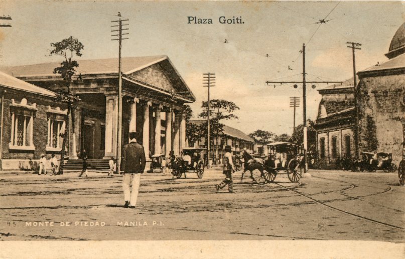 Philippines: Unused postcard titled ‘Plaza Goiti. Monte de Piedad’