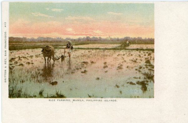 Philippines: Unused postcard titled ‘Rice Farming, Manila’.