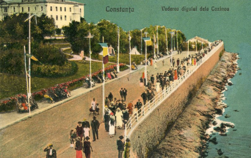Romania: Unused postcard titled ‘Vederea digului de la Cazinou’.