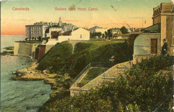 Romania: Unused postcard titled ‘Vedere spre Hotel Carol’. ed. Maier & Stern