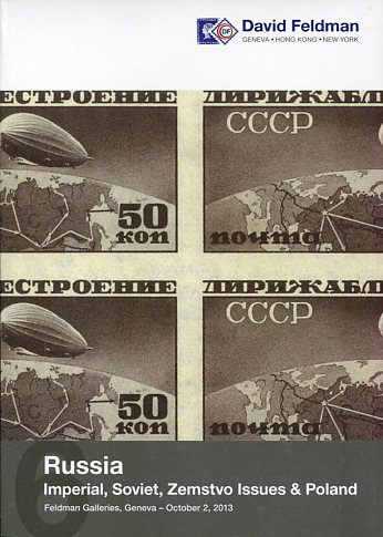 Auction Catalogue: 2013 (2 October). Russia Imperial, Soviet, Zemstvo Issues & Poland, David Feldman, 1005 lots, richly illustrated, no markings.