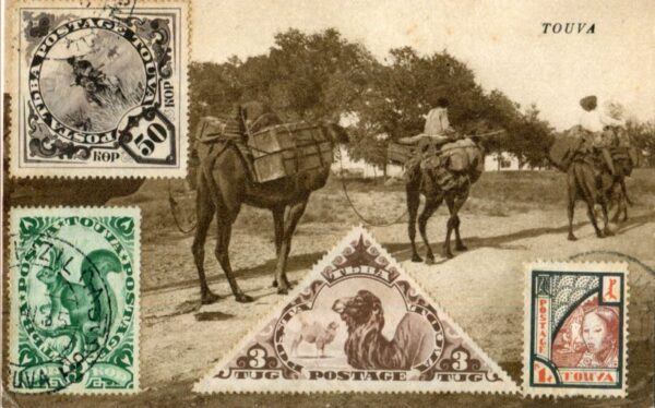Russia – Tannu Tuva: Unused postcard of Touva with postage stamps. They don’t belong to the card.