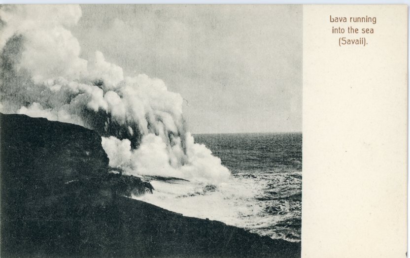 Samoa: Unused postcard titled ‘Lava running into the sea (Savaii)’. ed. A. Tattersall