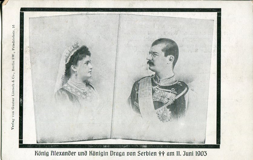 Serbia: Unused postcard titled ‘King Alexander und Königin von Serbien. am 11.Juni.1903’.
