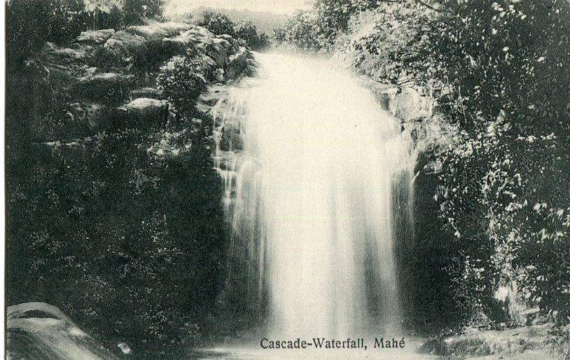 Unused postcard titled ‘Cascade Waterfall, Mahe’.