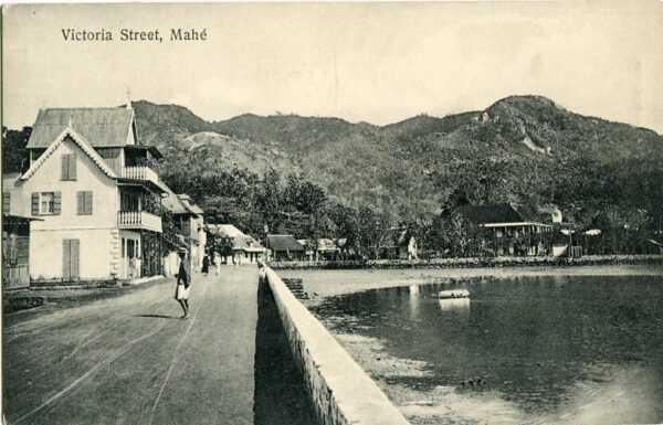 Seychelles: Unused postcard titled ‘Mahe – Victoria Street’. photo S. Ohashi