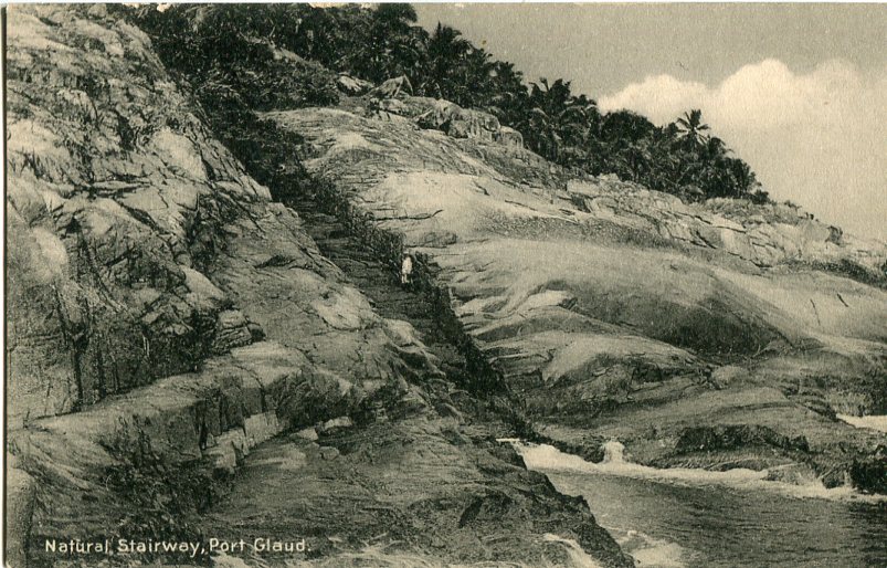 Seychelles: Unused postcard titled ‘Natural Stairways, Port Glaud’. photo F. Vel