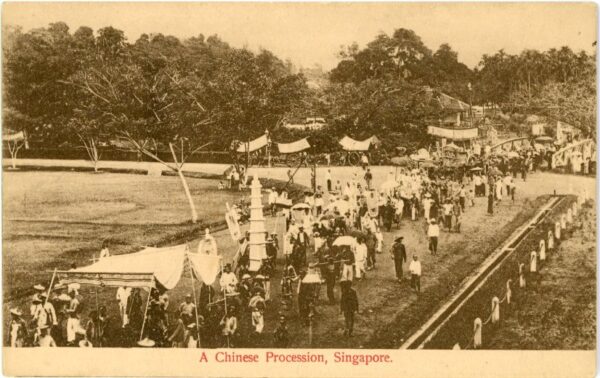Singapore: Unused postcard titled ‘A Chinese Procession’. ed. G.R. Lambert