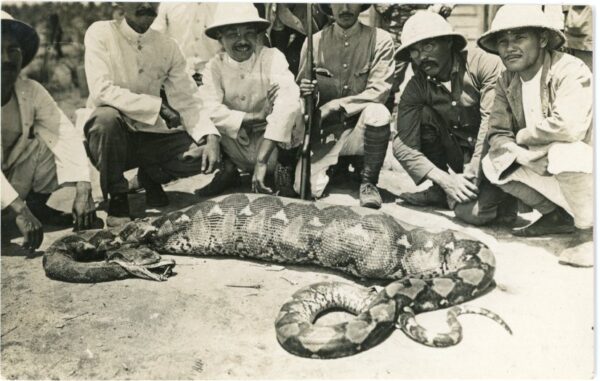 Unused photo postcard of Python Snake and people