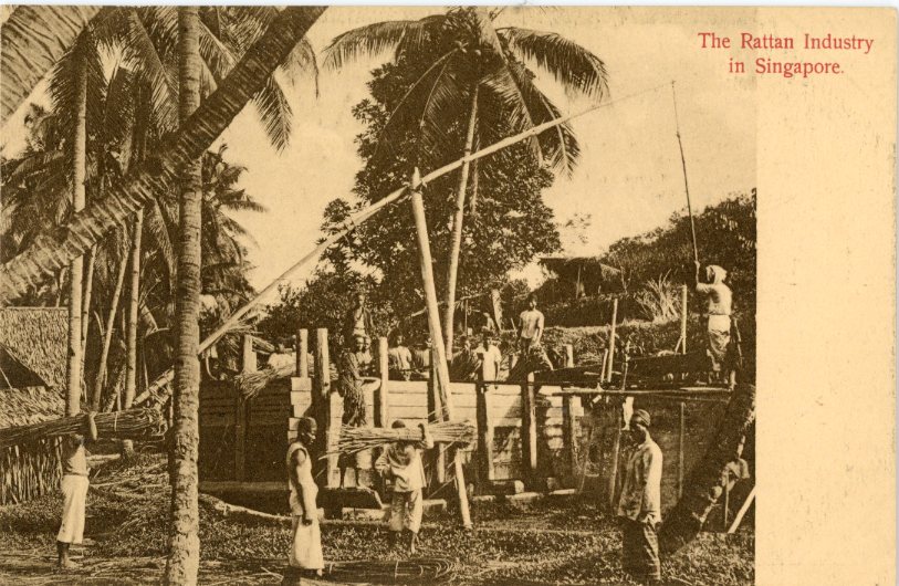 Singapore: Unused postcard titled ‘The Rattan Industry’. ed. G.R. Lambert
