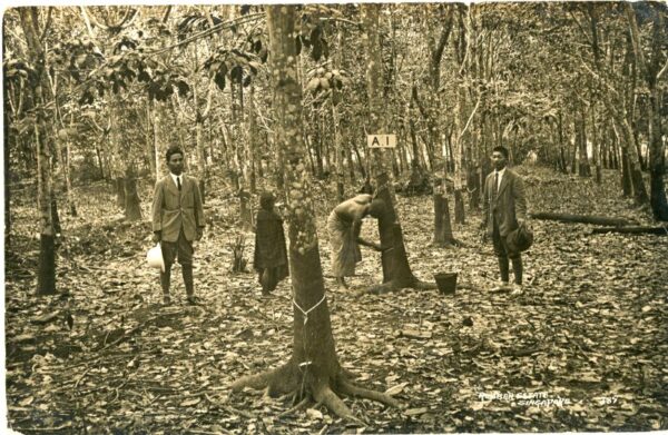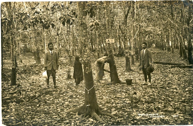 Singapore: Unused photo postcard titled ‘Rubber Estate’.