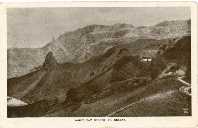 Saint Helena: Unused photo postcard titled ‘Sandy Bay Ridges’.