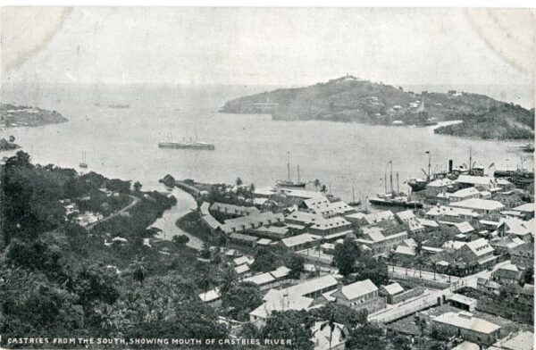 St. Lucia: Unused postcard titled ‘Castries from the south, showing mouth of Castries River’.