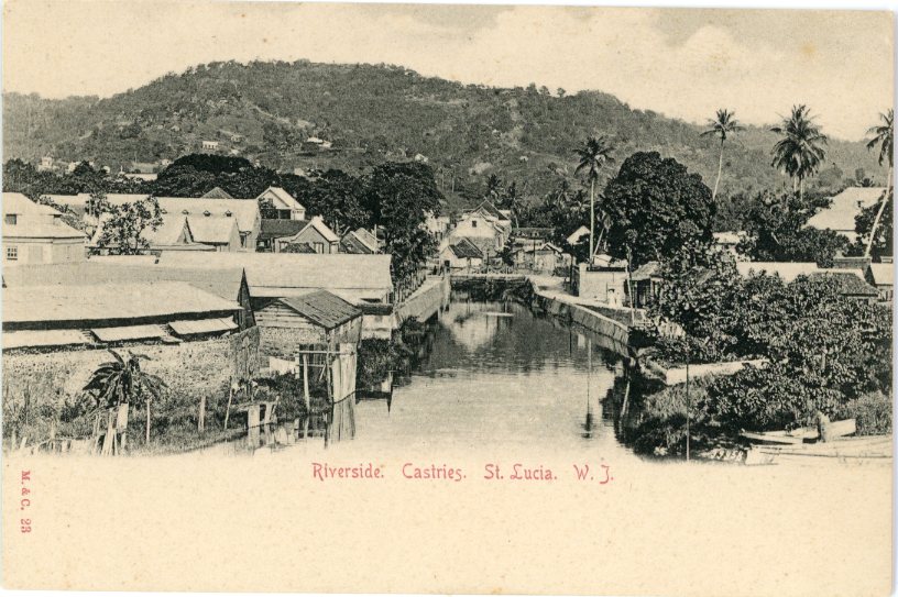 Unused postcard titled ‘Riverside. Castries’.