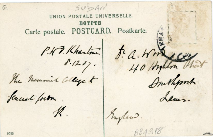 Unused photocard titled ‘The Soldiers Institute, Khartoum’.