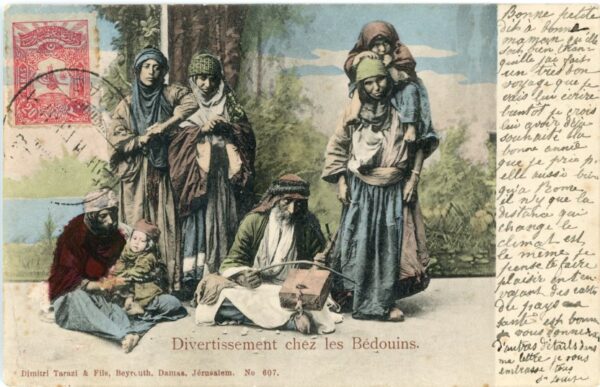 Syria: 1905 postcard titled ‘Divertissement chez les Bedouins’ posted from Damas to Switzerland. ed. Dimitri Tarazi