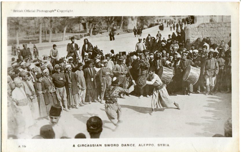 Syria: Unused photocard titled ‘A Circassian Sword Dance. Aleppo, Syria’.